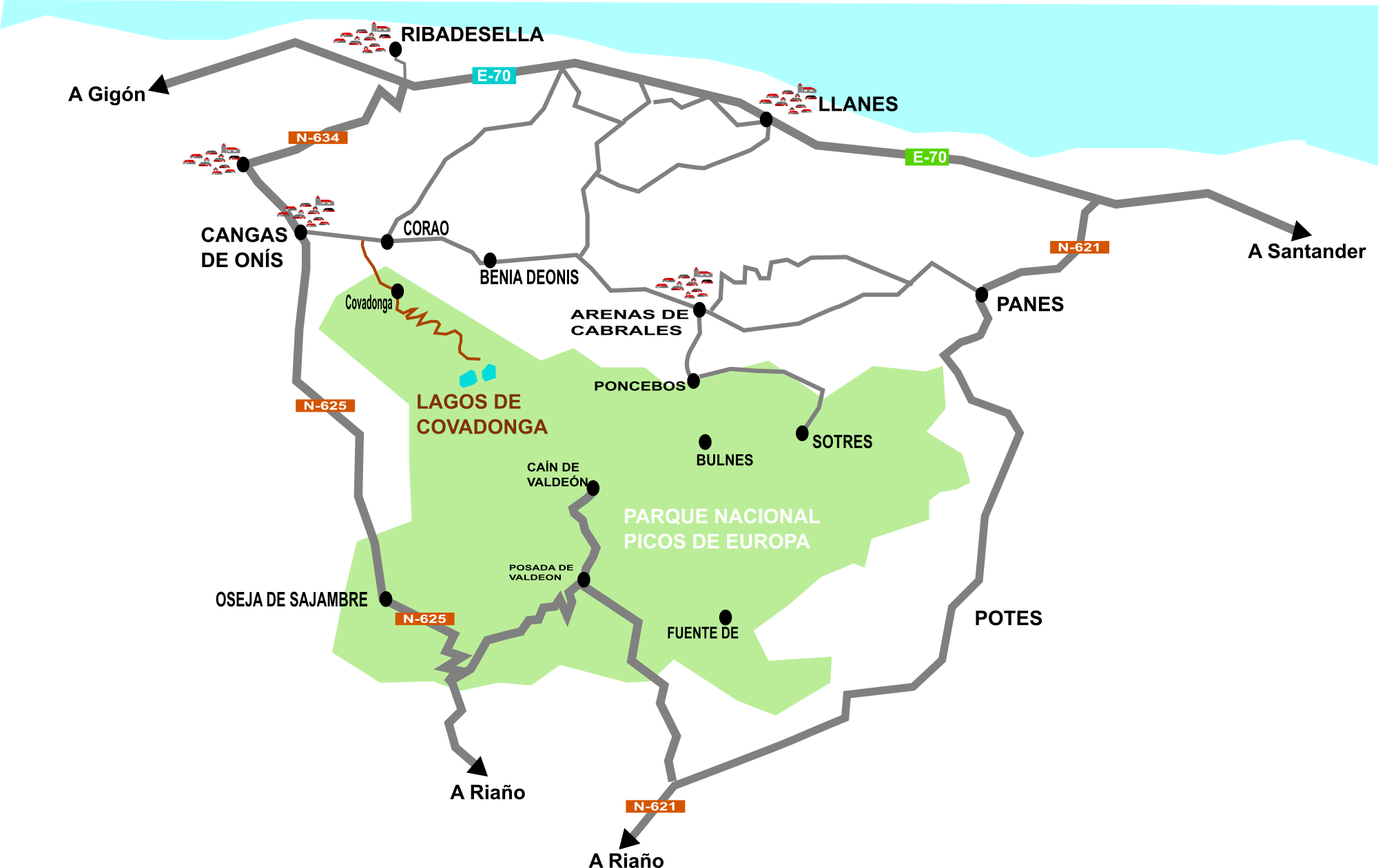El aparcamiento del coche en Cangas de Onís (parkings P1 a P4) es de 2 € por coche para todo el día. El billete de autobús (válido todo el día, ida y vuelta) cuesta: 9 € para adultos y 3,50 € para menores de 12 años (gratis para menores de 3). También hay servicio de taxis.