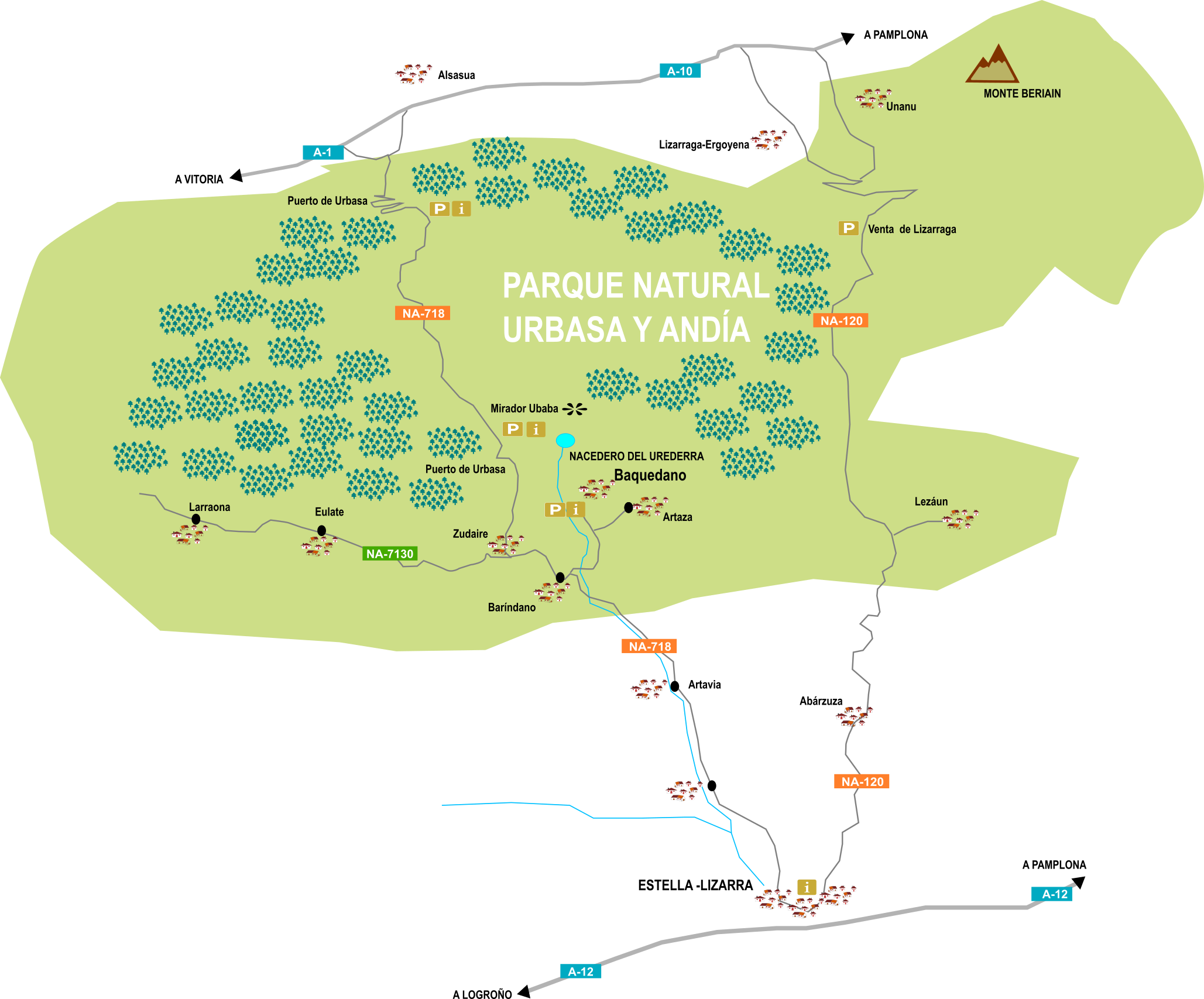 • Está permitido aparcar en las zonas de estacionamiento habilitadas (como el Área de acogida de Baquedano o el rincón de Urbasa, cerca del mirador de Ubaba).